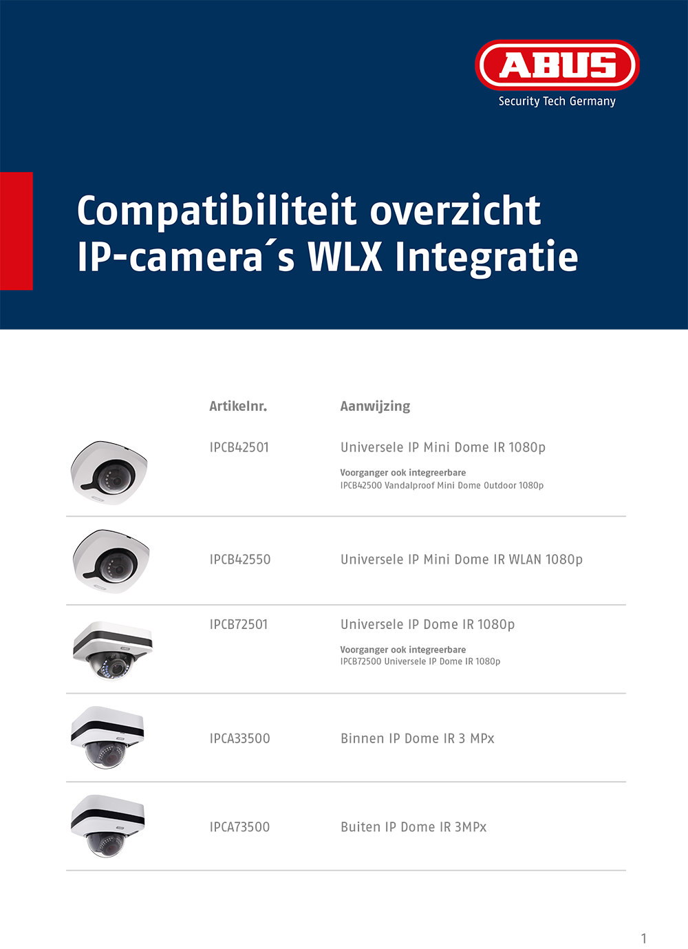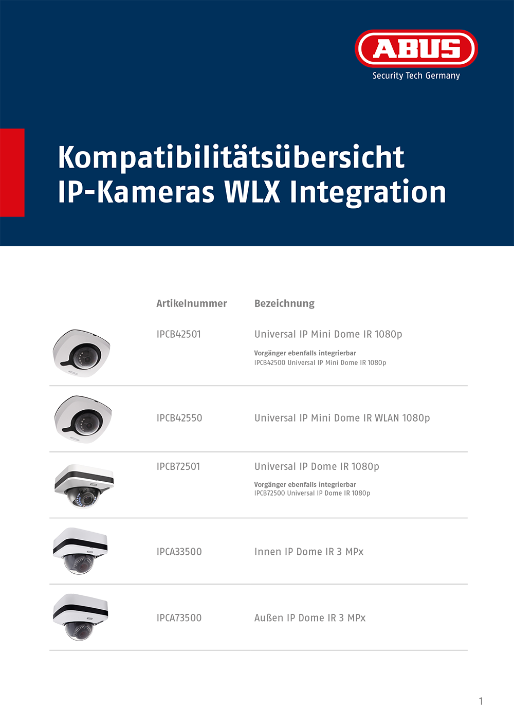 Kompatibilitätsübersicht IP-Kameras WLX Integration DE