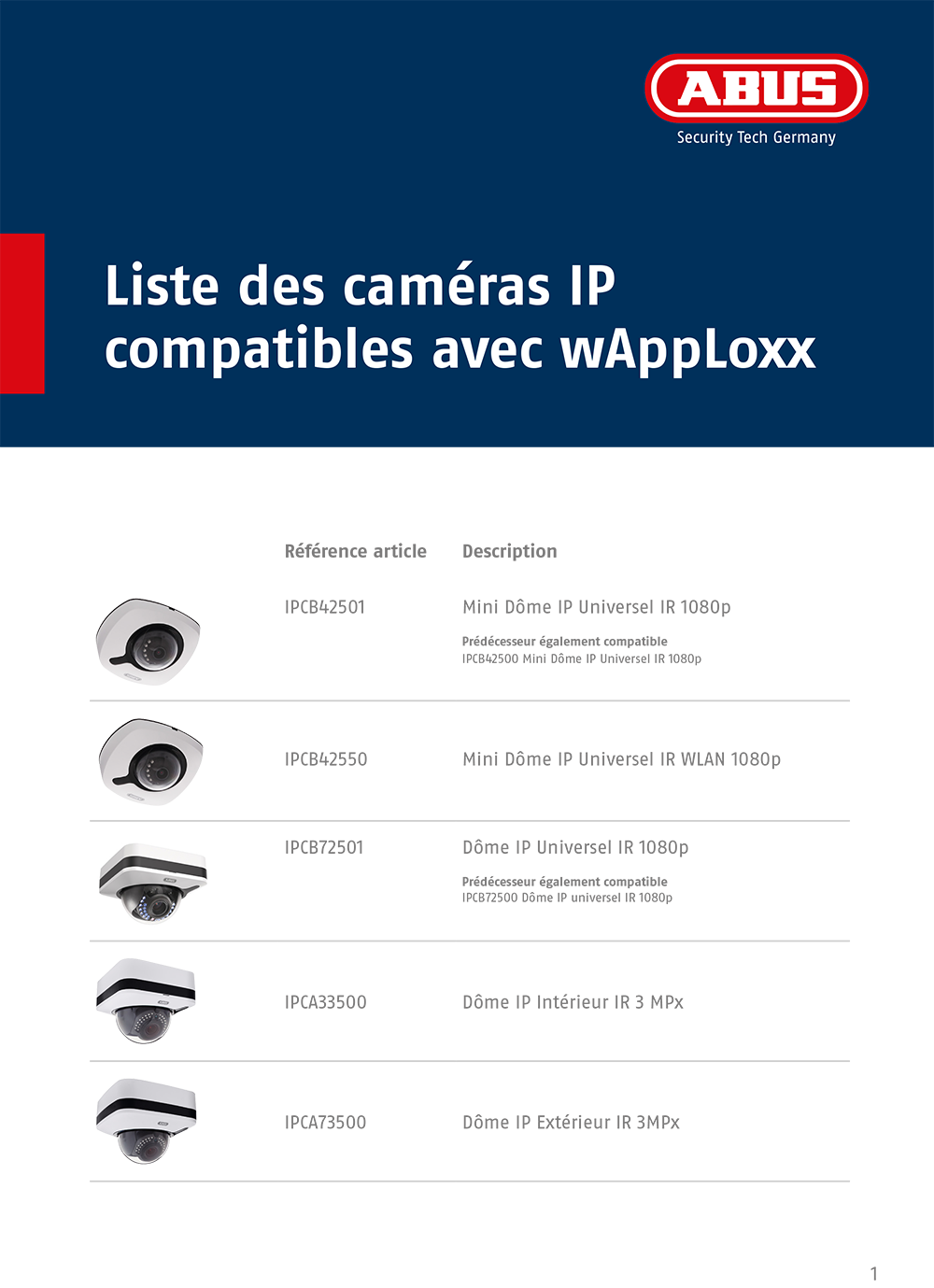Compatible IP cameras for wAppLoxx integration FR